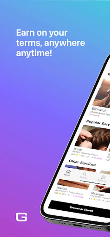 Sign up and start providing on-demand services in minutes. You only need your Smartphone and talent to start.