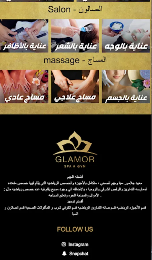 معهد جلامور سبا وجيم الصحي ، متكامل بالأجهزة والحصص الرياضيه المتعدده لممارسه التمارين والرقص الشرقي والزومبا ، بالاضافه الي وجود مسبح يقام فيه عده حصص رياضيه