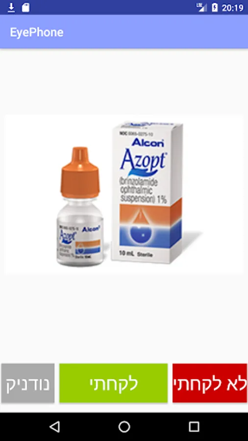 הערה: שימוש באפליקציה אינו מהווה תחליף לייעוץ רפואי. מומלץ לפנות אל רופא העיניים המטפל לקבלת הוראות מדויקות לגבי הטיפול התרופתי.