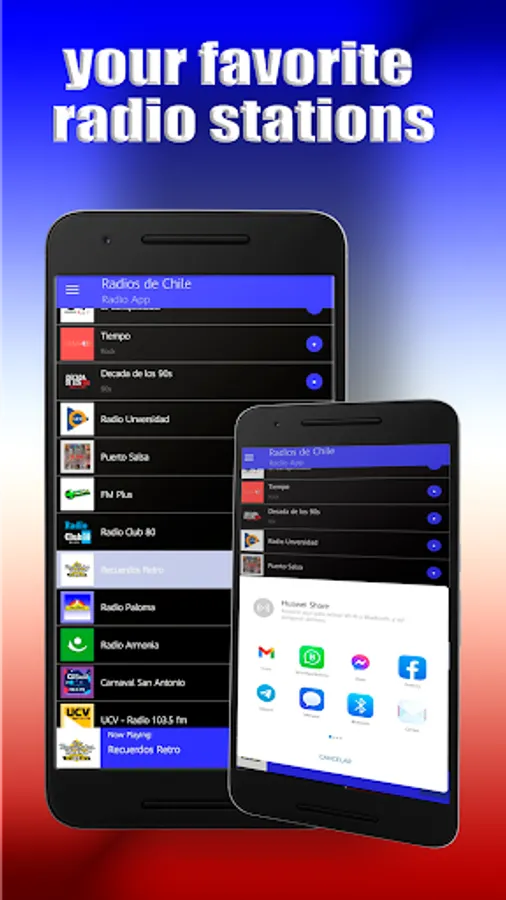 By downloading the new application Radios de Chile free AM-FM, you will be able to listen to your music, your favorite programs and the latest news of everything that happens in Chile from anywhere in the world you are.