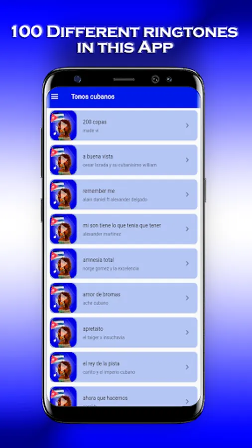 Cuban ringtones is an easy-to-use application, you just have to download it on your Android mobile and start enjoying each of the free Cuban ringtones, bachata, merengue, salsa and use each ringtone to customize your notifications and alarms