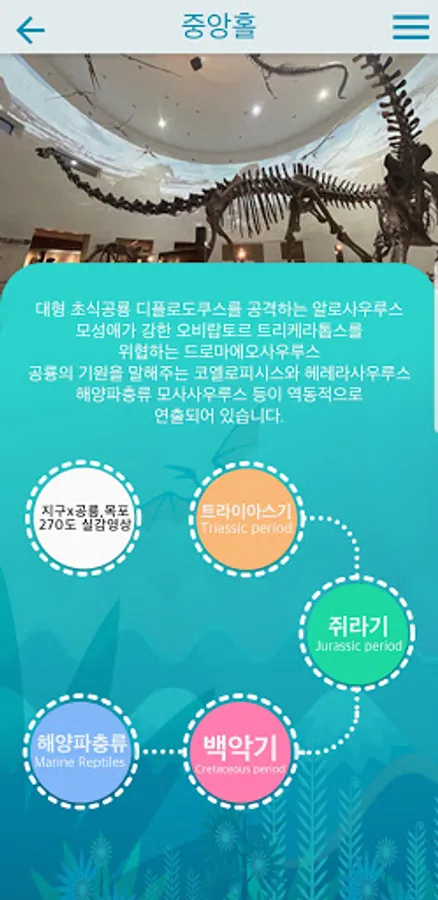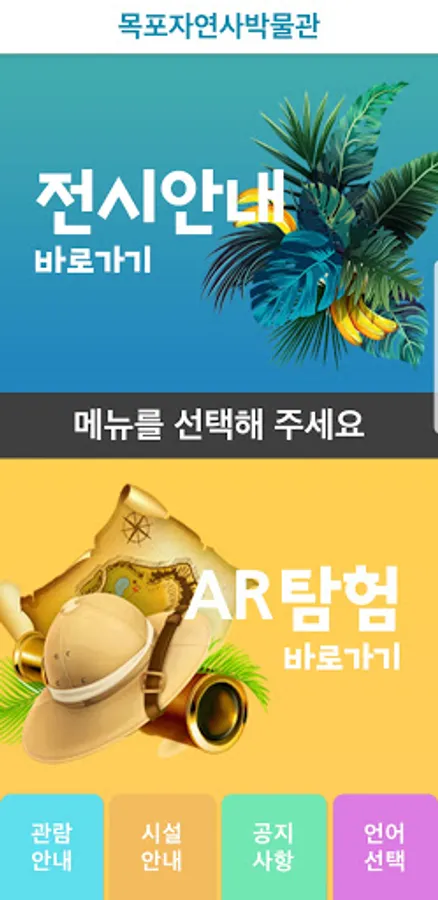 It is an app that introduces the exhibits of the Mokpo Natural History Museum and allows you to learn and enjoy information about the natural ecosystem through AR experiences that include a simple quiz.
