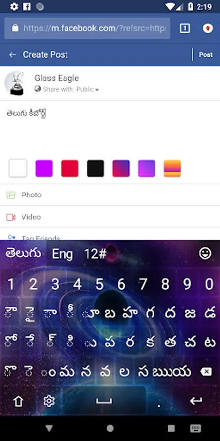 Telugu keyboard is enabled on Facebook, Twitter, Viber, WhatsApp or any other application in your Android device.