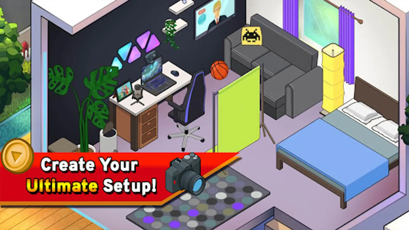 Start in a small house with not much but a couple of walls and a simple setup. But once you make your first video, a whole new world will open up to you. You'll earn views, subscribers, and money to unlock and buy upgrades to equipment, clothes, awards, wheels, and houses as you grow. You might want to move into the luxury villa once your ad revenue allows you. And that is just the start!