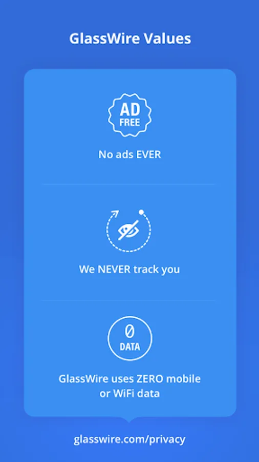 Our company based in Austin, Texas USA was founded specifically to help people protect their privacy and security. Our Windows and Android software combined have been downloaded over 20 million times! We make money through sales of our software, not by selling your data to third parties. With GlassWire your data and app usage information never leave your phone. GlassWire will NEVER show you ads or violate your privacy.