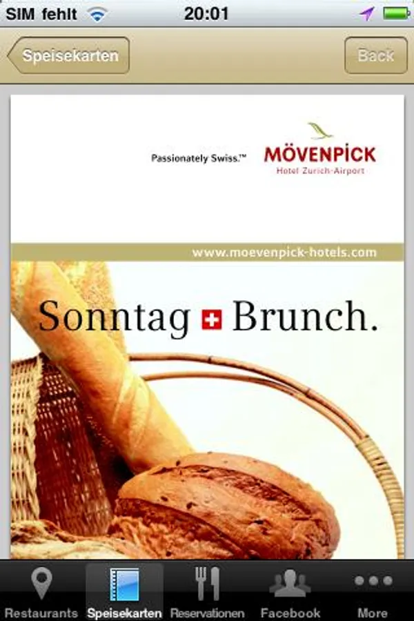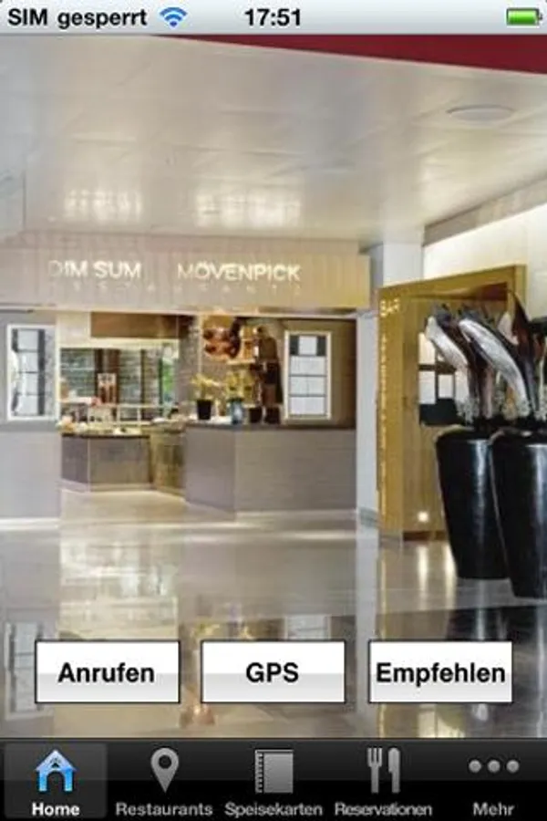Mit dieser App können Sie für alle drei Restaurants (Dim Sum, Mövenpick, Le Chalet) folgende Features benutzen: