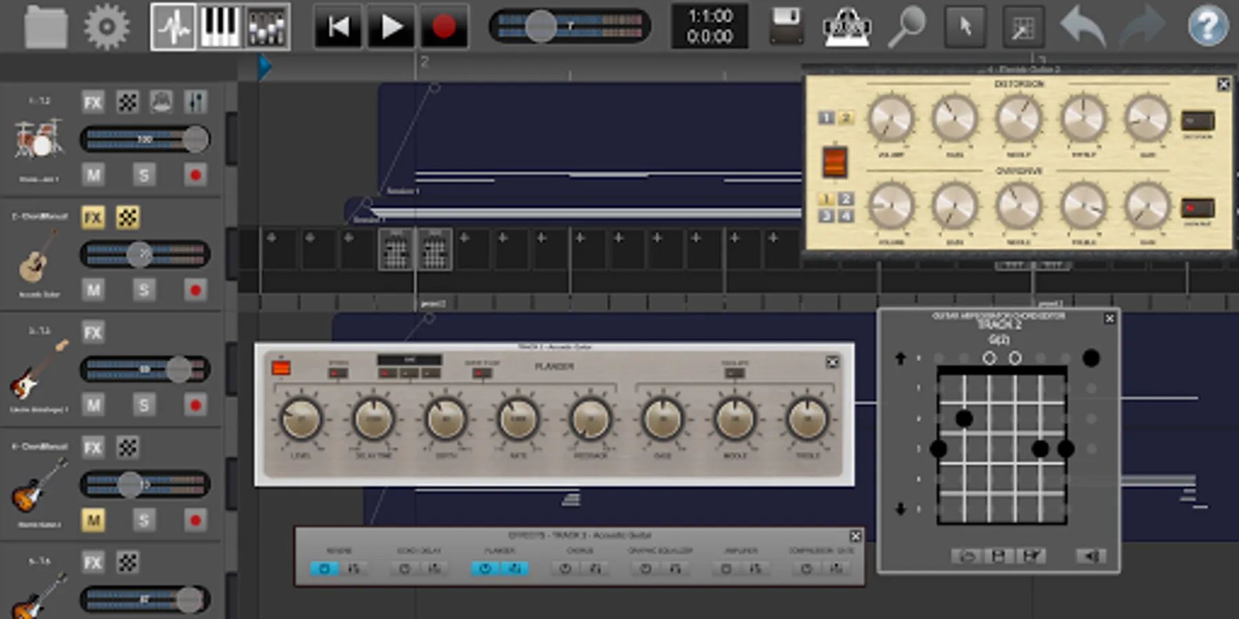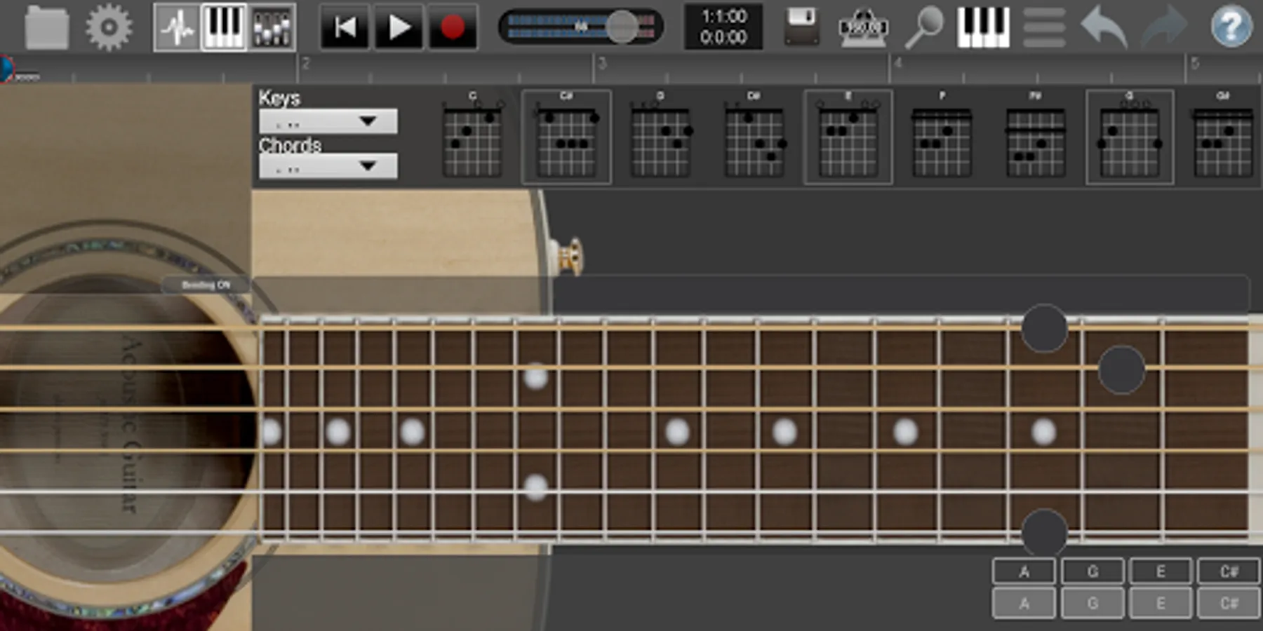 · Virtual (right hand and left hand) guitars with bending, capo and chords.