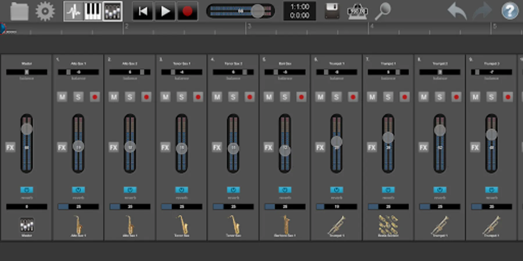 · Mixer with built-in immersive reverb effect (with independent settings on each track)