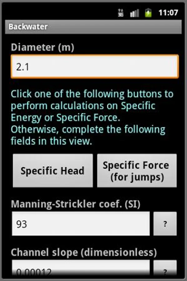It also allows to calculate Specific Energy and Specific Force (for jumps).