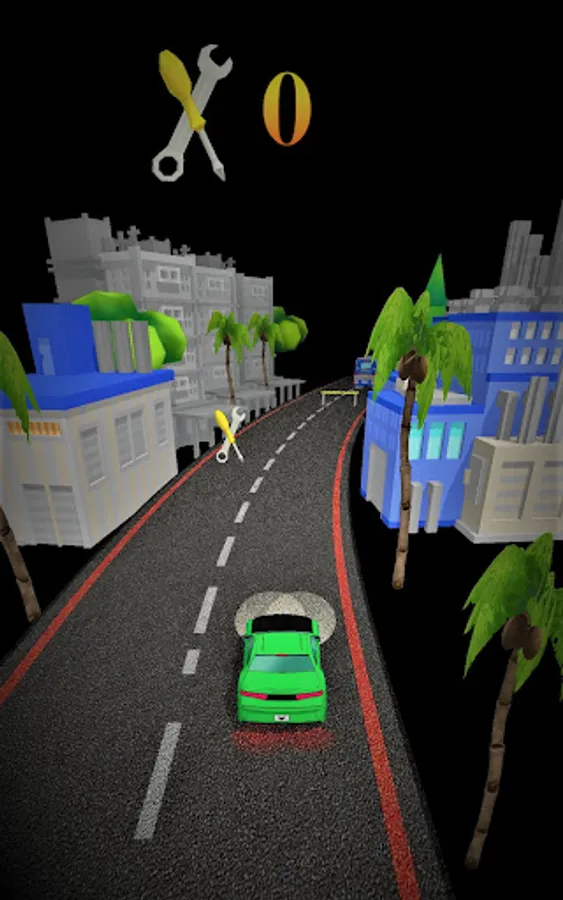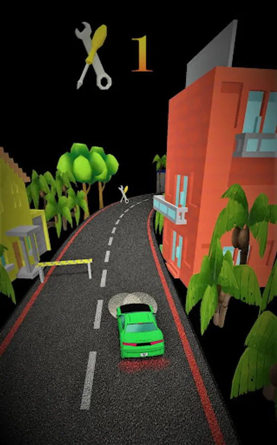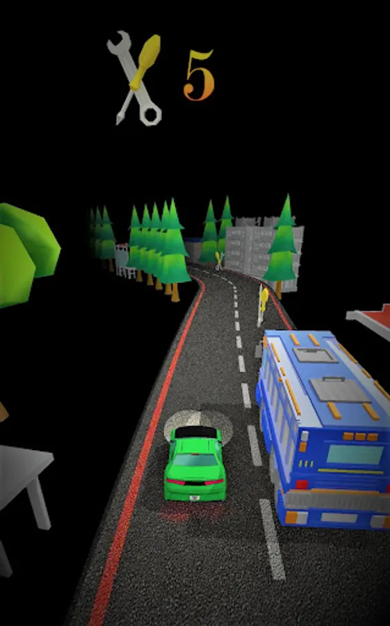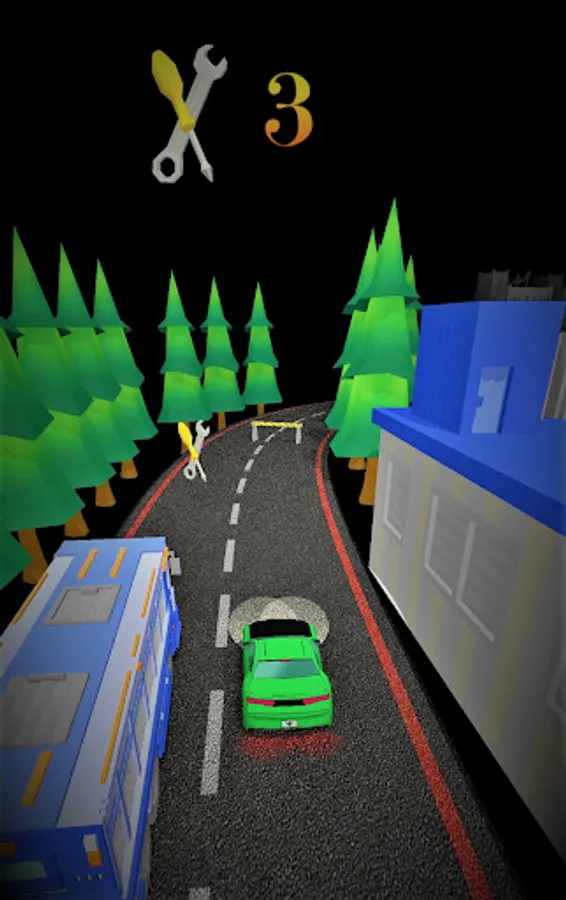 The aim of the game is to drive through the night collecting tools for points and dodging vehicles, buses and road barriers along the way. Collect as many tools that you can to add up your points, without colliding into cars, buses or road barriers.