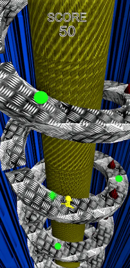 The aim of the game is to collect as many points as you can as you run down the spiral and jumping over the spikes before you die. The further you get down the spiral the more points you are collecting.