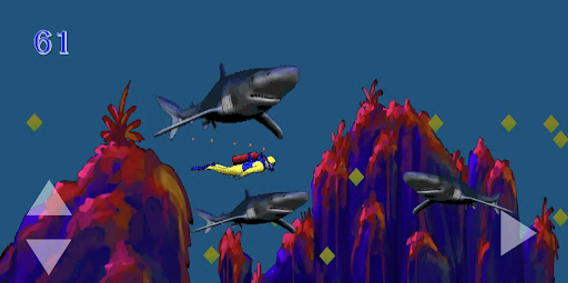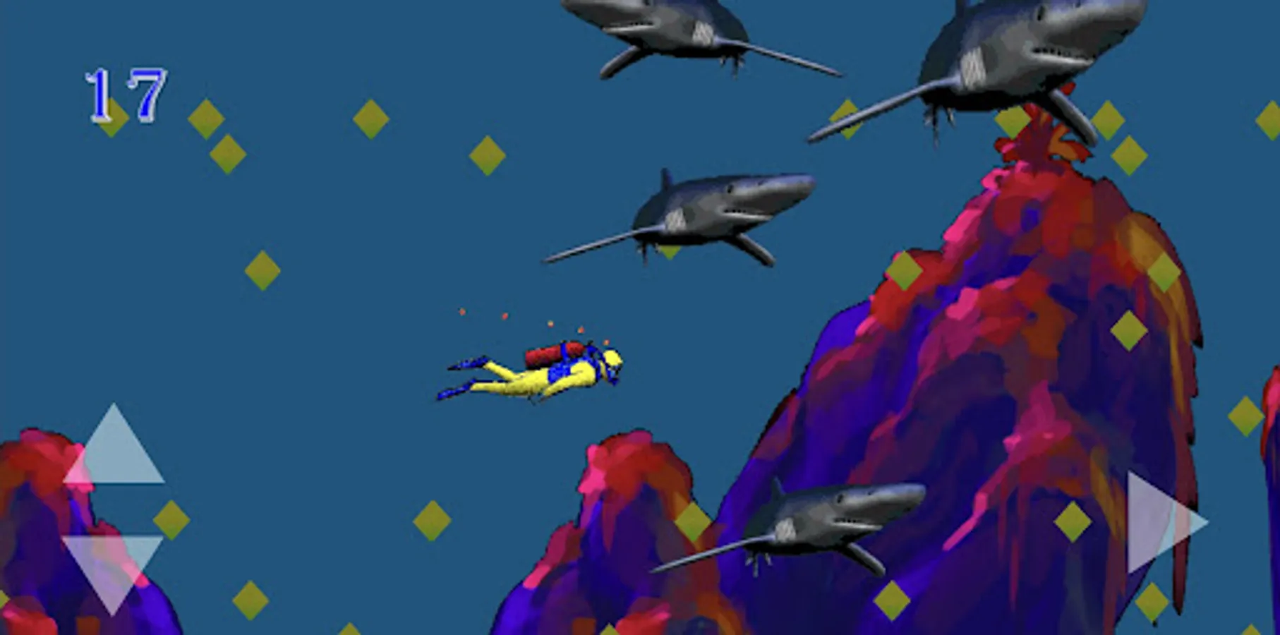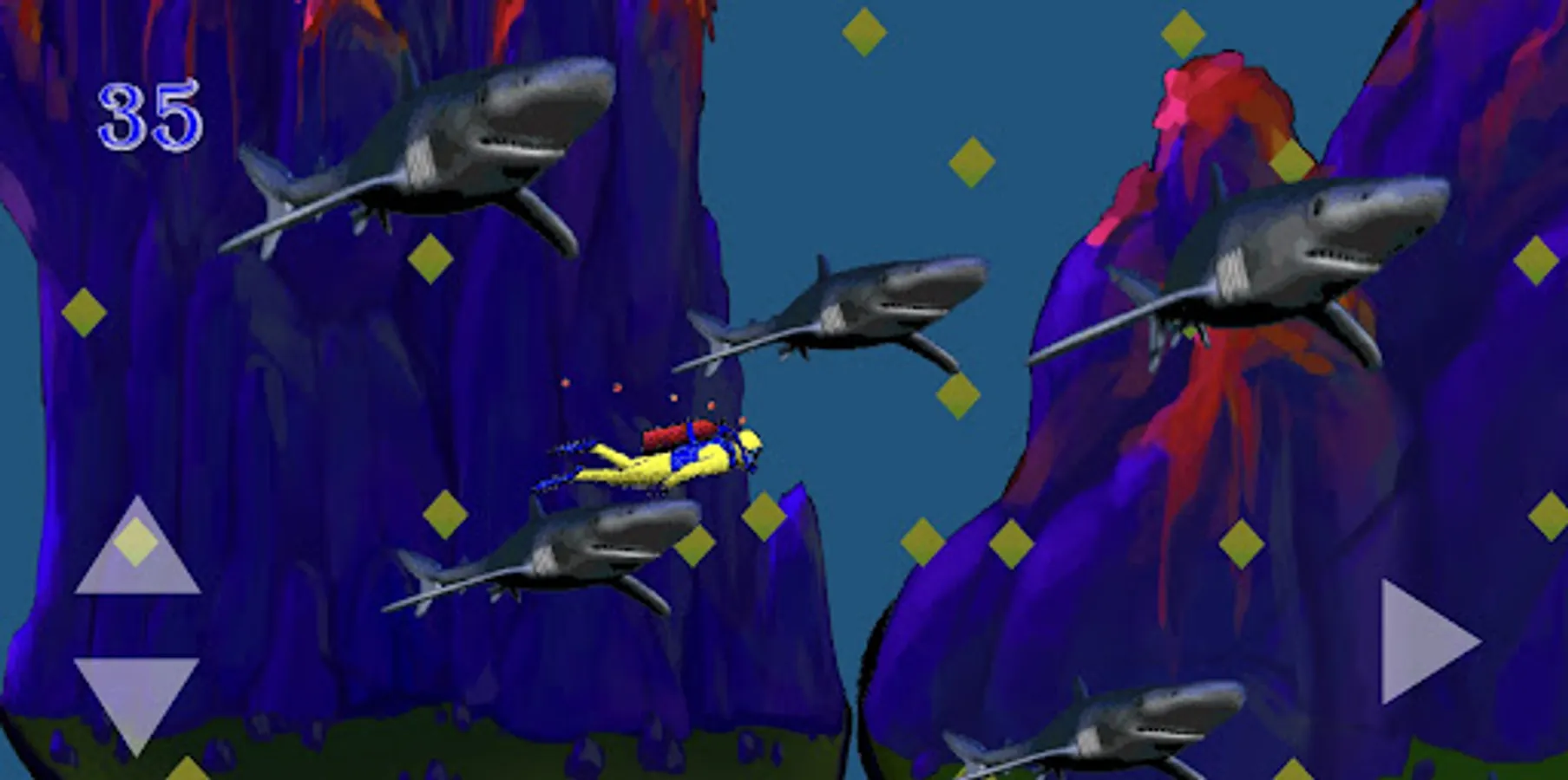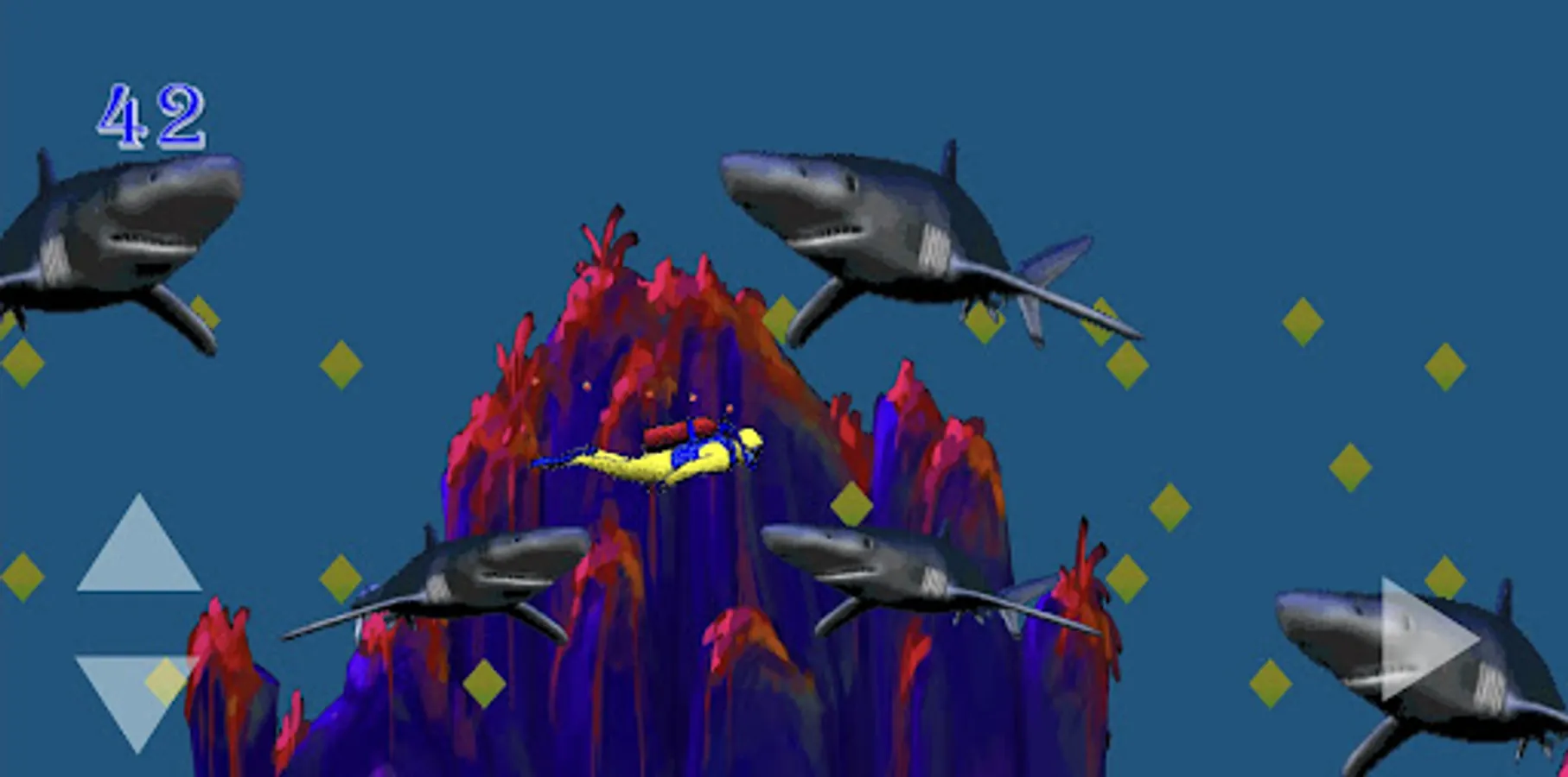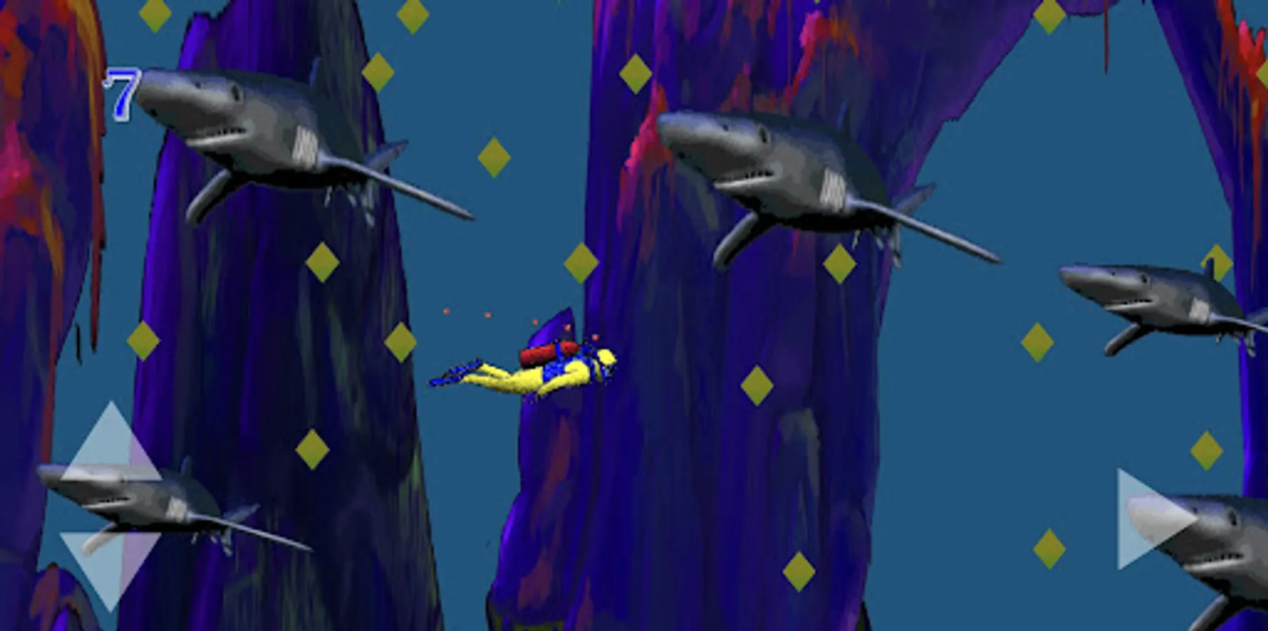 The aim of the game is to collect as many points as you can by dodging your way through the weird strange underwater world shark infested waters.