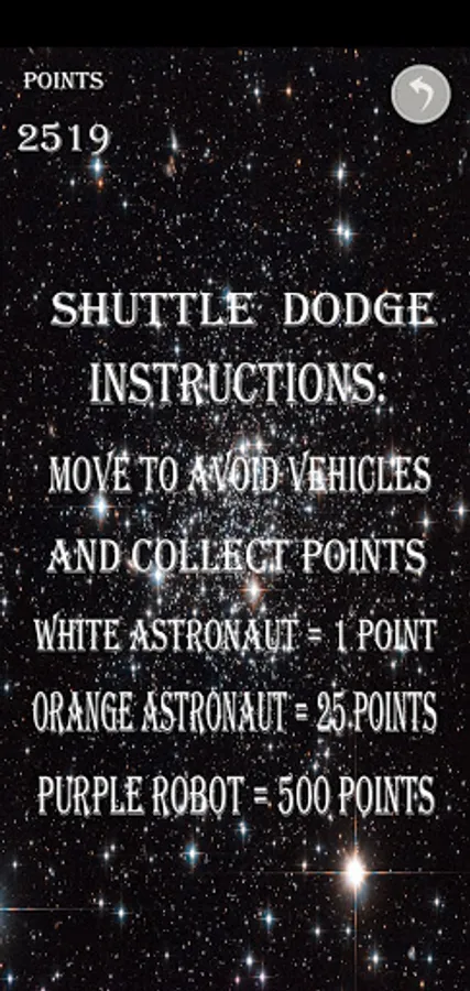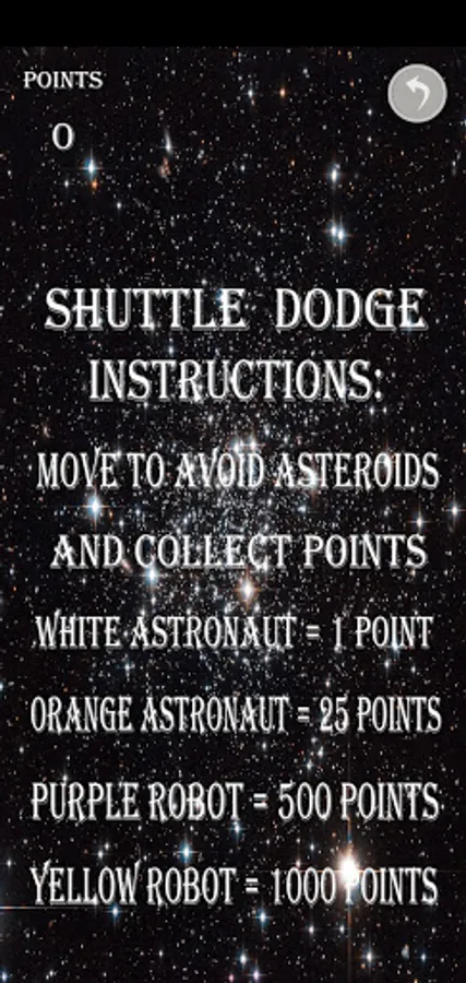 Take control of your shuttle and dodge your way through the asteroid field. Collect floating astronauts to earn points. The first area is easy but once you gain experience with this try hyper. Your shuttle will be much faster and more astronauts to collect. Don't forget to collect the coloured robots for extra bonus points. This game is for free, No ads and nothing to pay. Have fun playing.