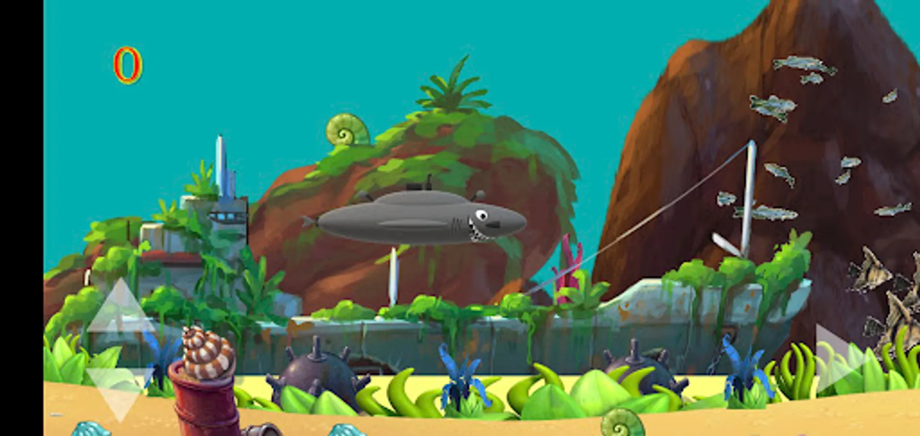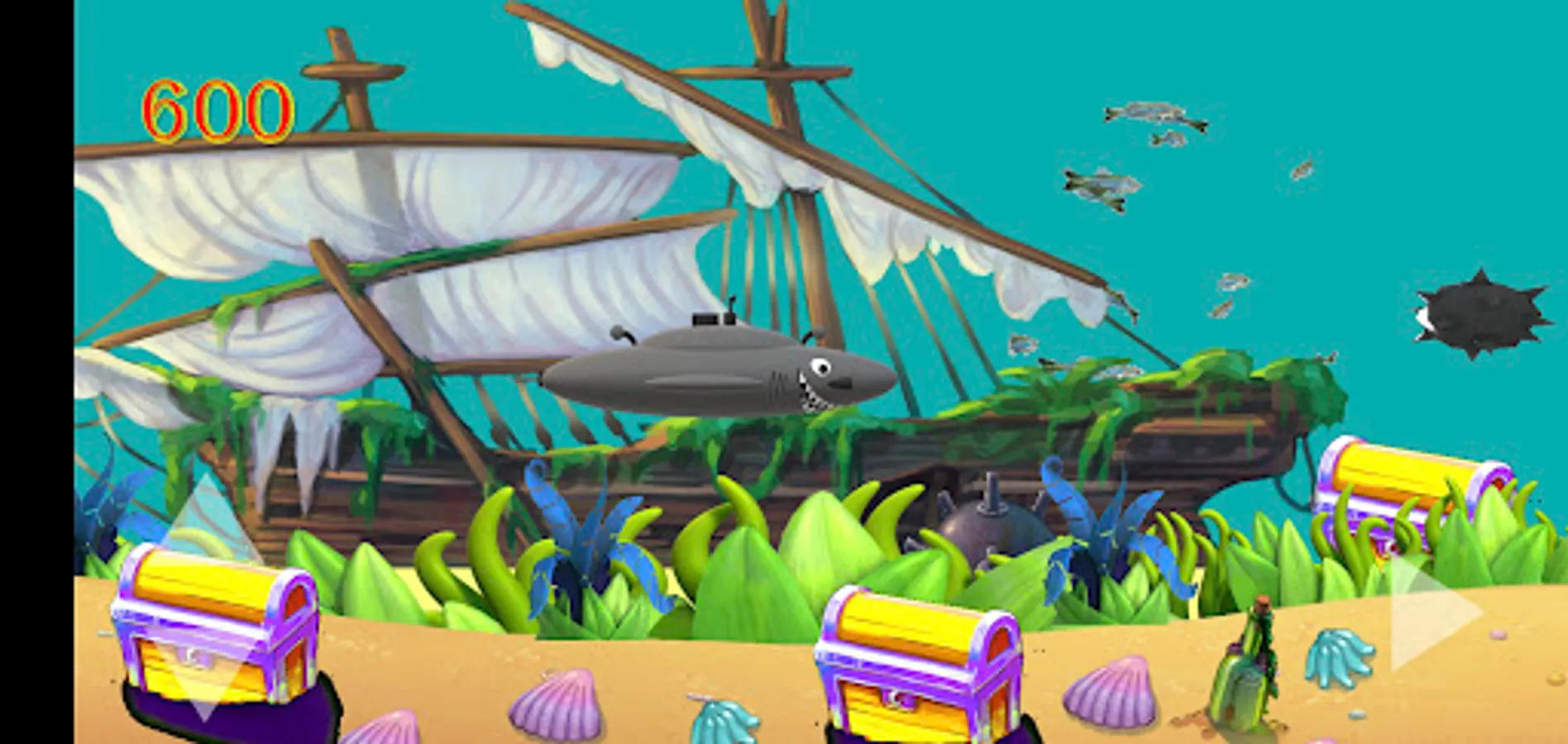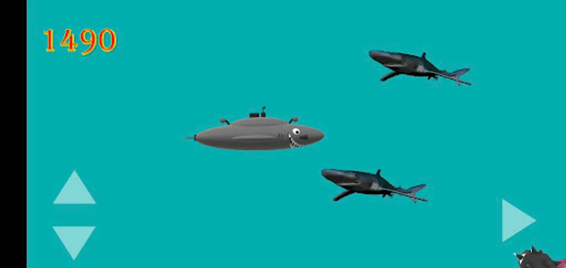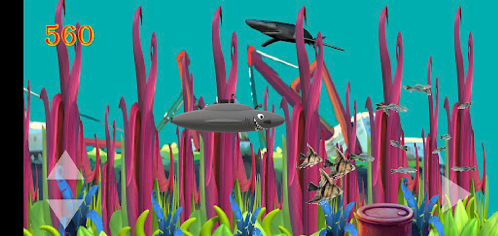 Adventure your shark sub through the Bermuda Triangle in the colorful and beautiful reef. Collect as many fish and school of fish as you can to add up your points, but remember you have to dodge the sharks, the killer whales, the wild dolphins and the sea mines as these will kill you. There are bonus points to collect if you see the blue dolphin.