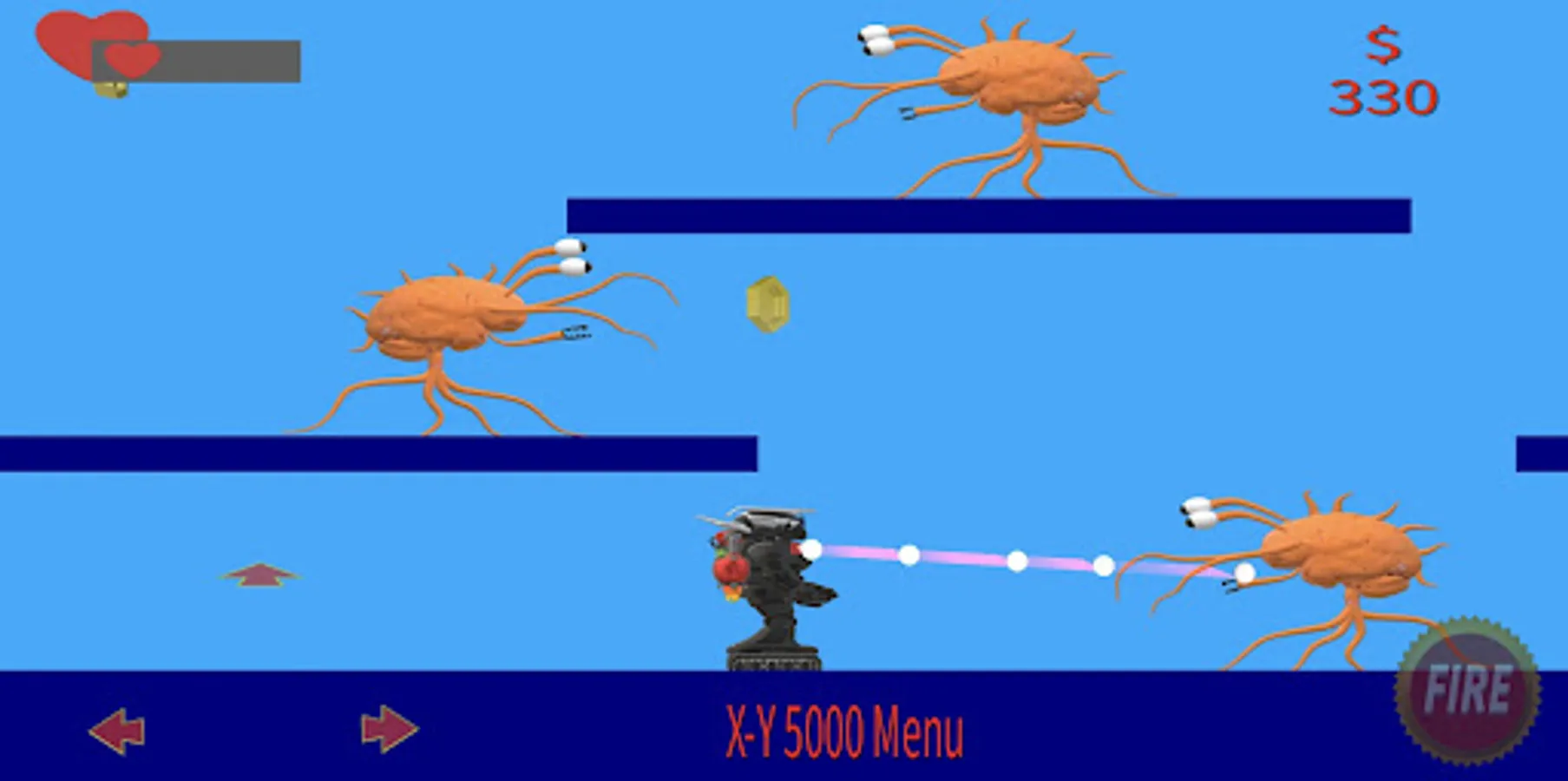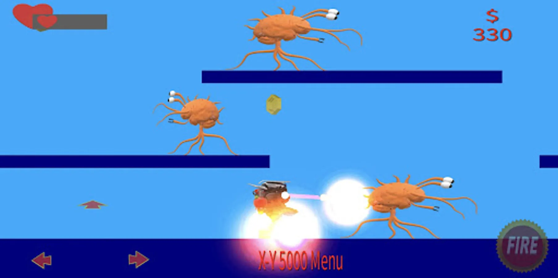 The aim of the game is to collect as many points that you can, by dodging and destroying aliens with your XY5000 robot machine. This game has two XY5000 robot machines that you can select as your character.