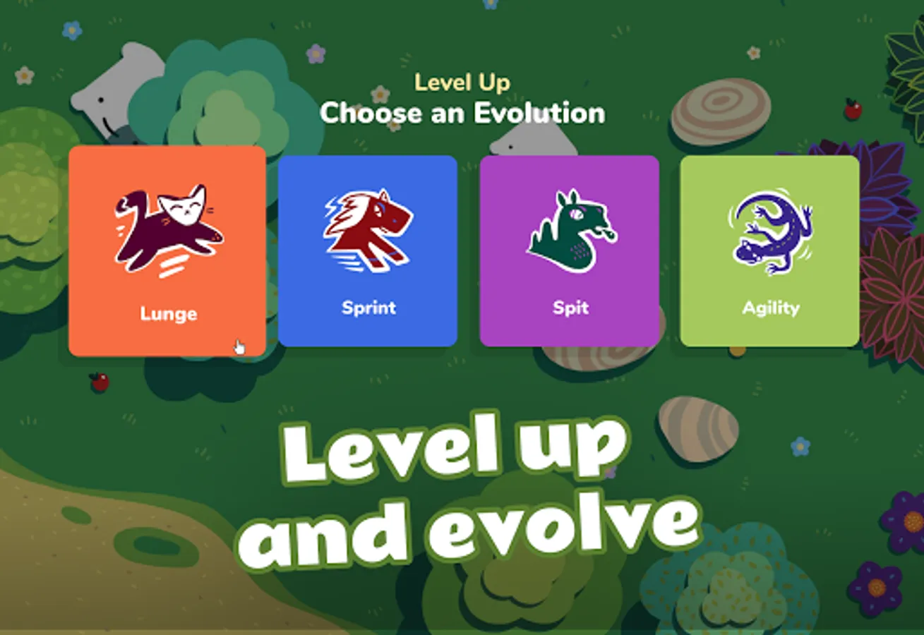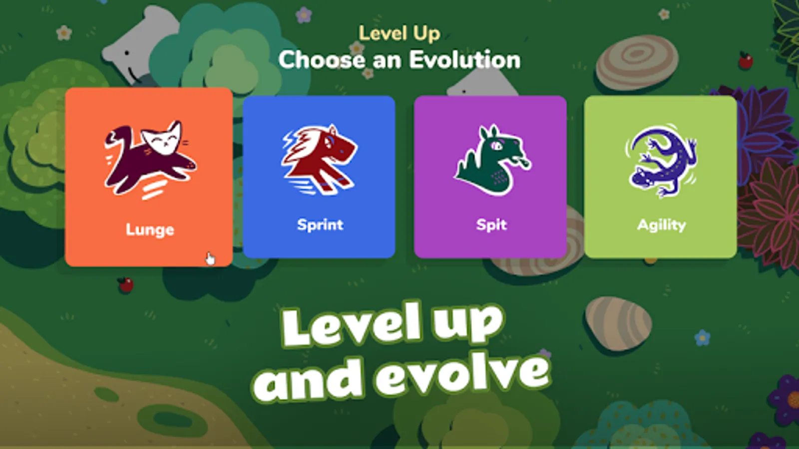 Level up and transform your creatur with 6 evolutions and over 20 skills to choose from! Rush, slither, dash, fly, and more! Upgrade and unlock 9 creaturs as you go!