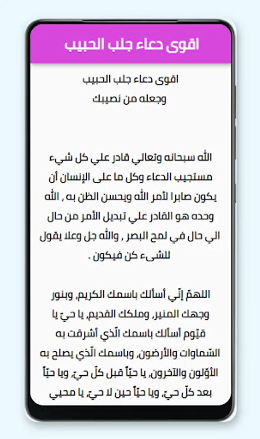 يضم التطبيق ايضا دعاء لجلب الحبيب العنيد والغضبان و اقوى الادعية + شروطه