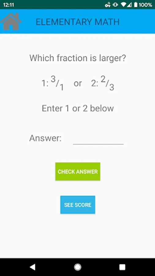 This app is colorful and designed with elementary math learners in mind. The app does not collect or store any user data, and it does not allow users to communicate with each other. Included throughout the app are questions that will help to teach addition, subtraction, multiplication, division, and fraction comparison. All questions are generated and checked in the code of the app, allowing Elementary Math to be used offline as well.