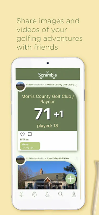 Scramble allows you to create posts with photos, videos, or just checking in at a course when you’re nearby. You can post scores manually or connect to your GHIN and share your official rounds!