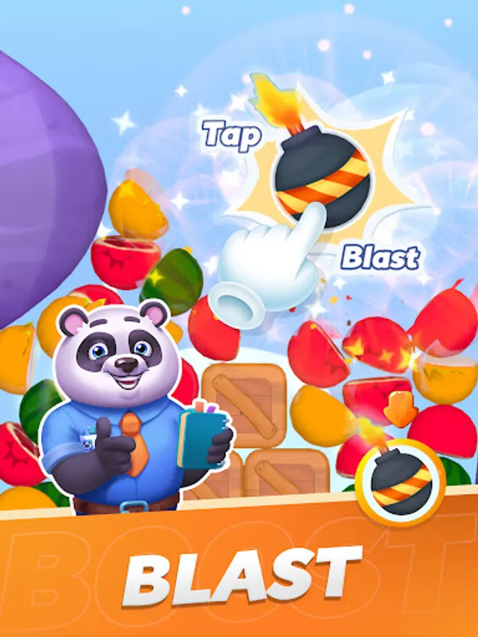 Match two fruits to create a bomb. Combine two bombs to get a 2x bomb and continue combining until you reach the biggest BOMB! The bigger the bomb, the bigger it blasts!