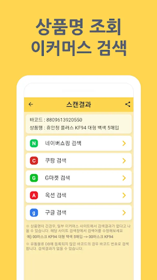 ※ In the case of barcodes that are not registered in the DataBase, they are searched using the barcode number, and there may be no inquiry result.