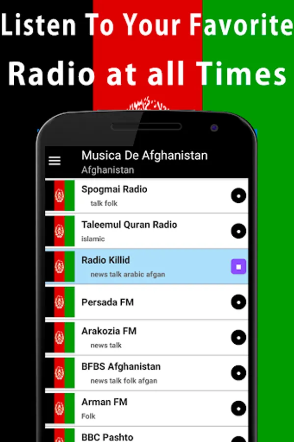 Afghanistan Music is the best radio application in Afghanistan, which you can find This application offers you a selection of the best radio stations, all online music, all the genres you want to listen to such as: rock, pop, salsa, cumbia , electronic, trap, rap and some religious radios