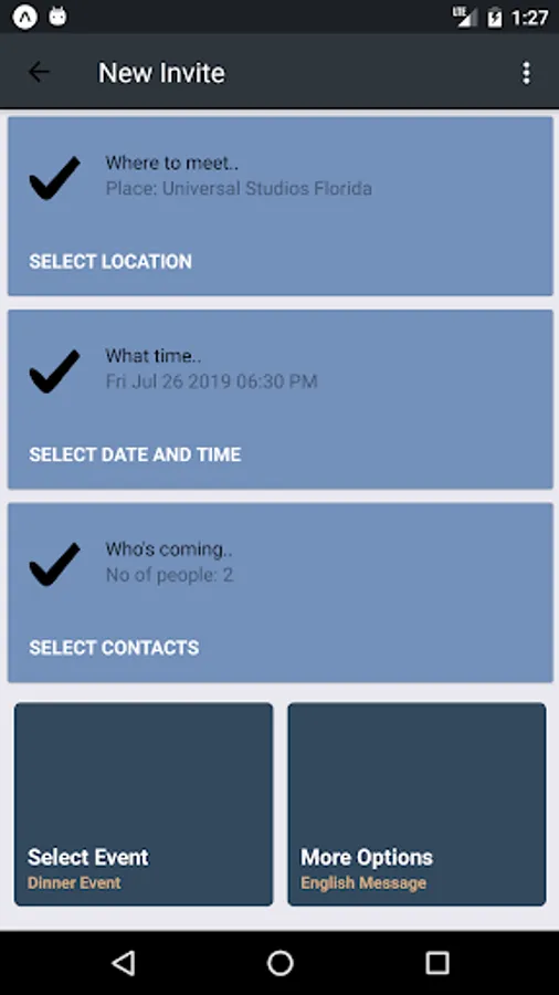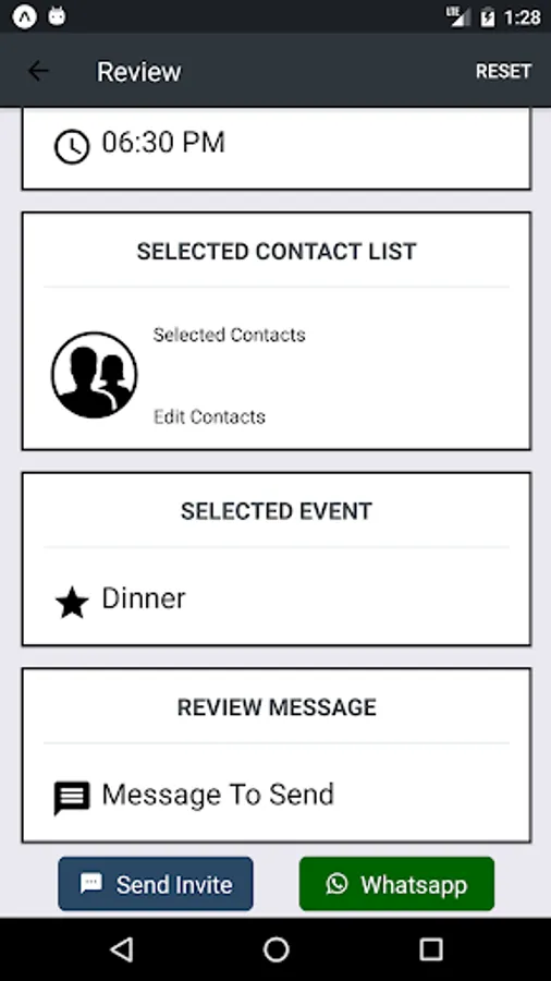 It's always a hassle to invite friends through text message typing the address, date, time, event and all other information. This app takes away all these troubles and allow you to send text invites to family and friends with just few clicks. This app is totally ad free and also no registration is required to use this app.