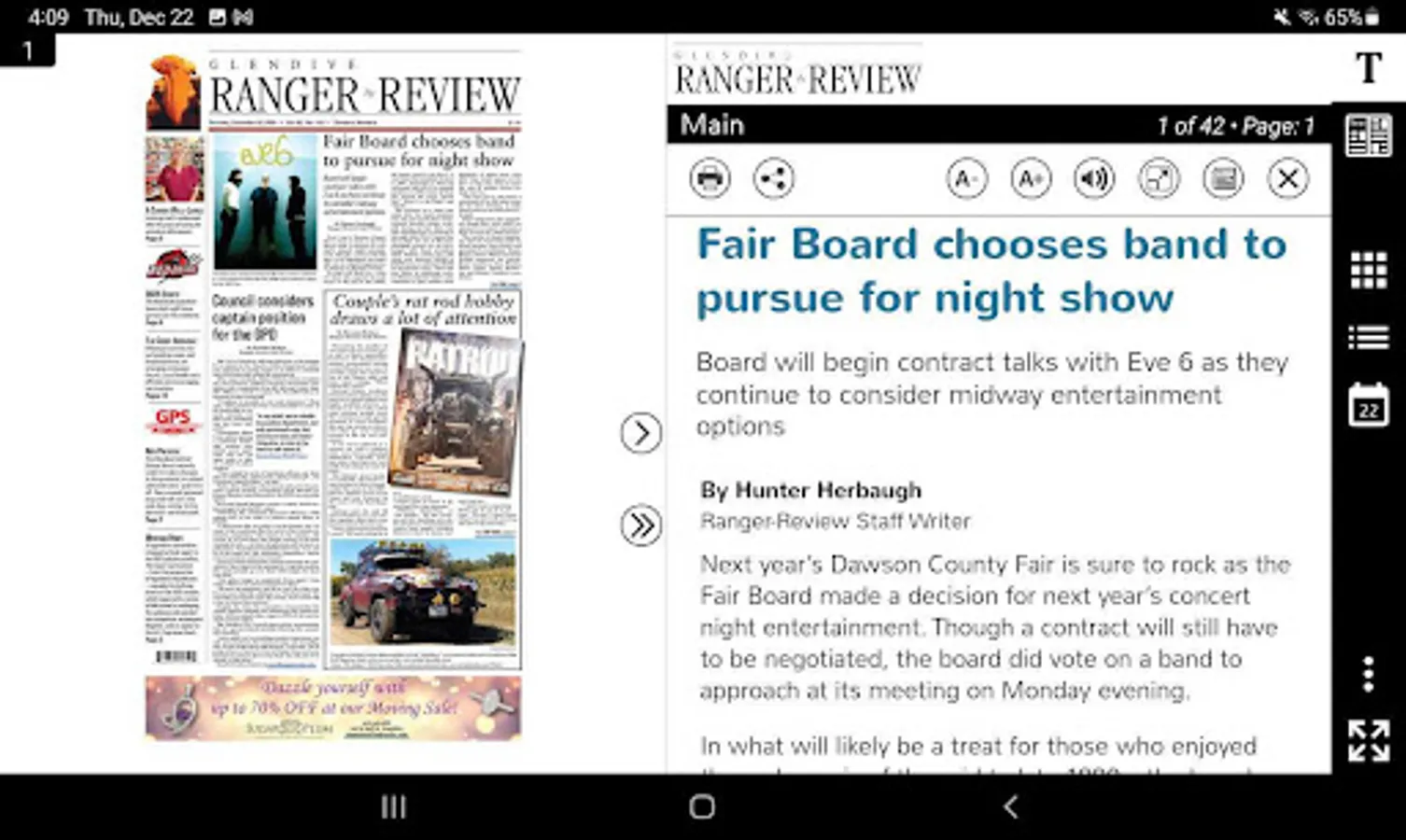This is a digital replica of the printed newspaper