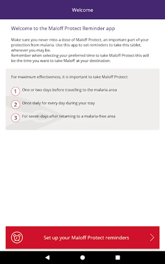 Use the official Maloff Protect Reminder app to make sure you never miss a dose, set reminders to take your dose at the right time wherever you may be.