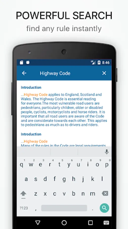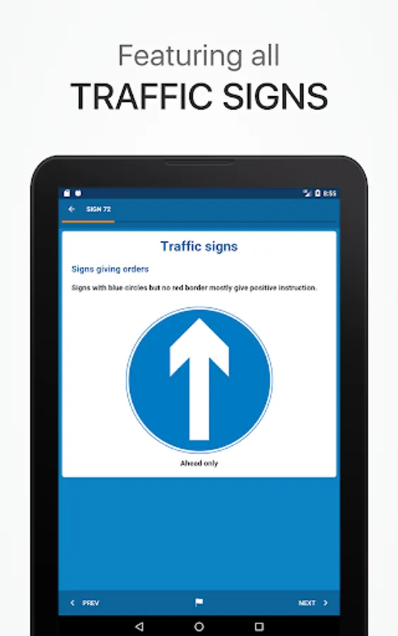 This app contains all content from The UK Highway Code, including road and traffic signs.