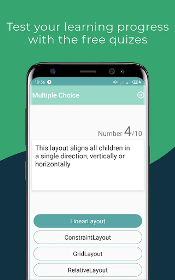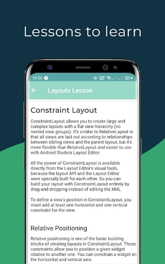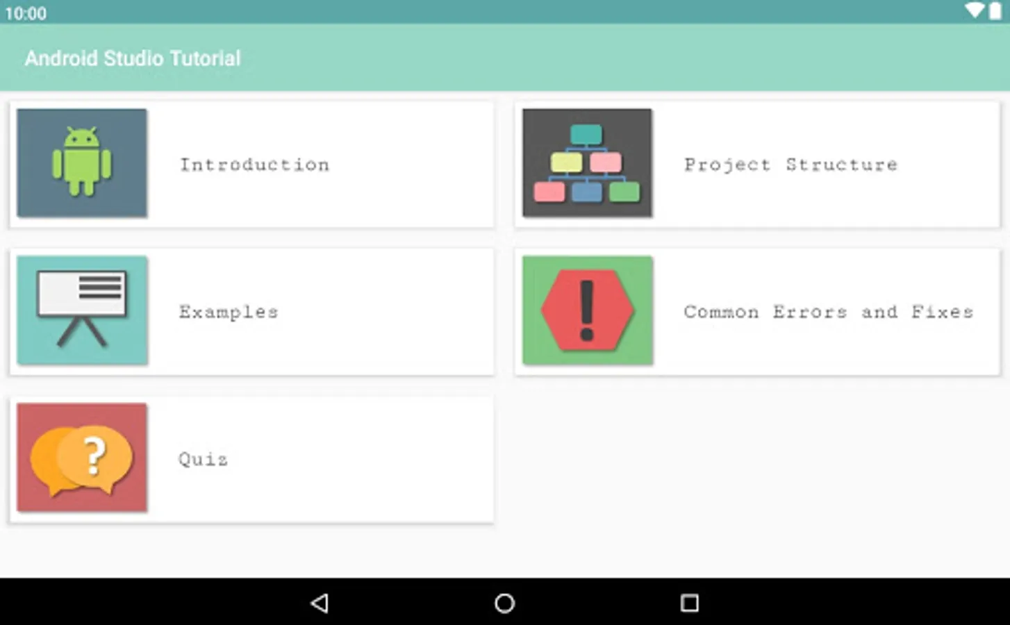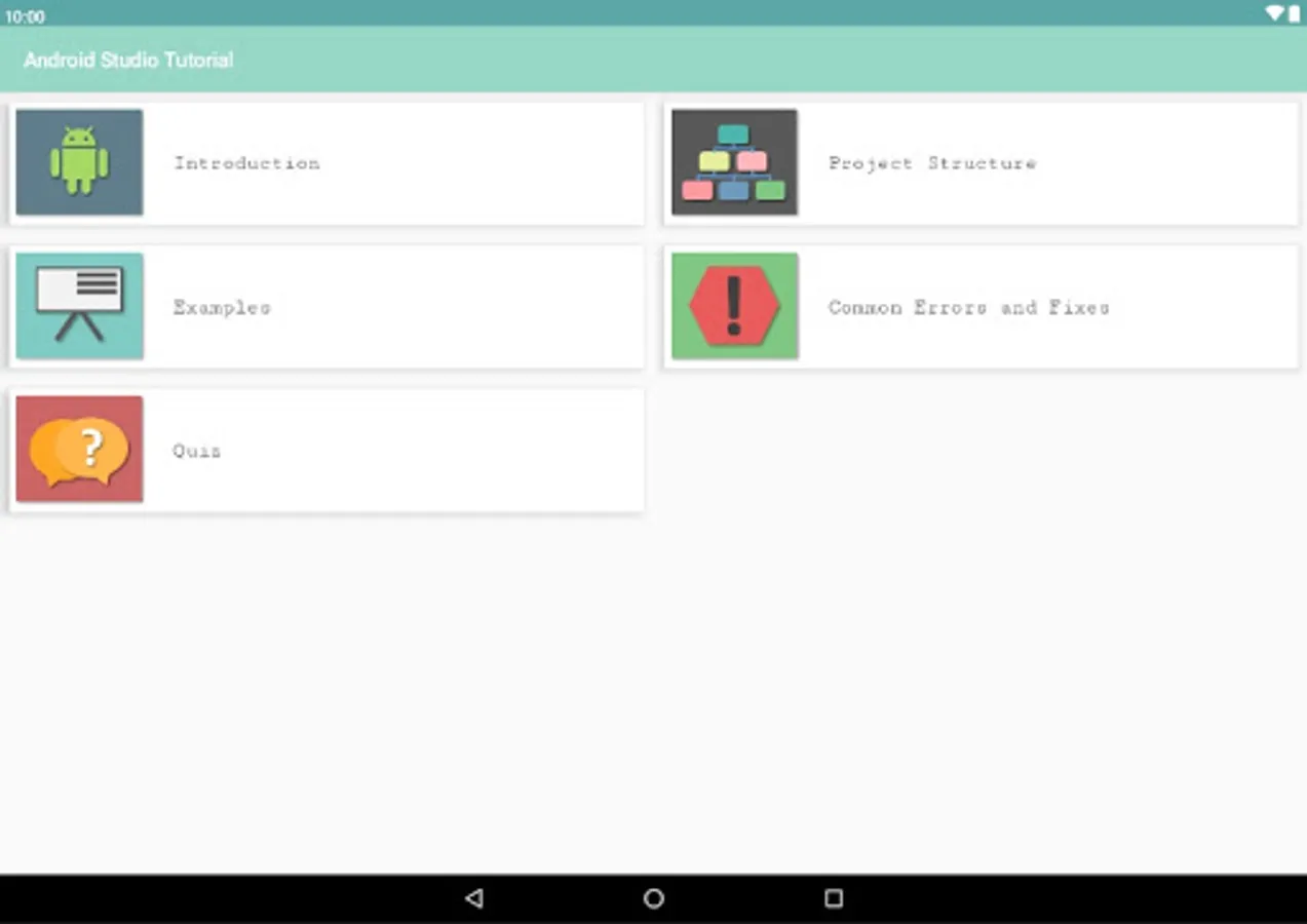 A simple quiz is also included to test your progress in learning android and Android Studio concepts.
