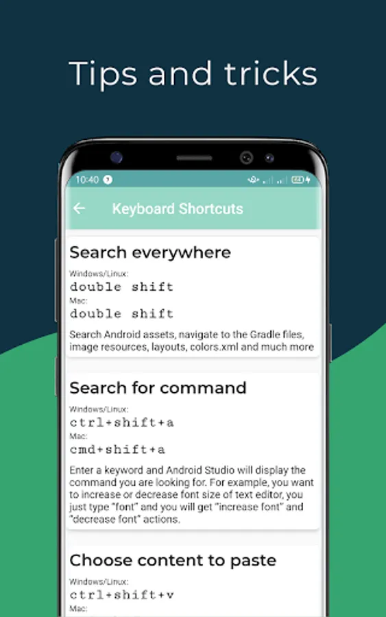 Android Studio Tutorial app is a guide on developing android apps using Android Studio. The tutorials include installing Android Studio and building your first android app. In the app, you can also learn the basic concepts of android app development using Android Studio. It also contains examples with complete source codes.