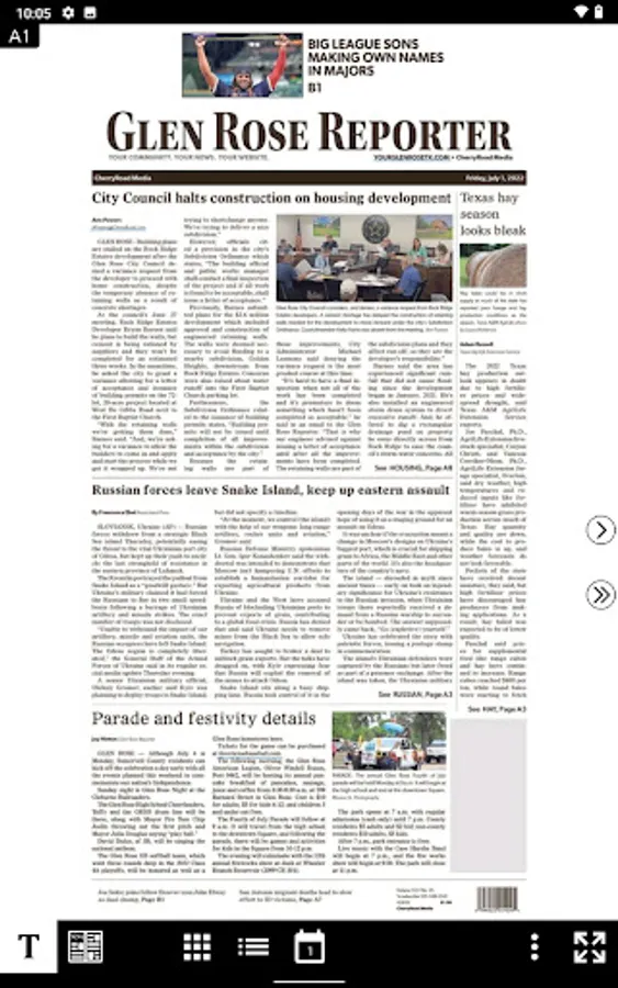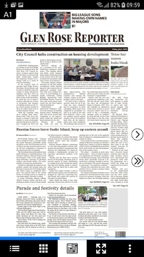 The Glen Rose Reporter eEdition is an exact digital replica of the printed newspaper. Readers of the paper can flip through the pages, read stories, photos, and view ads just they appeared in print.