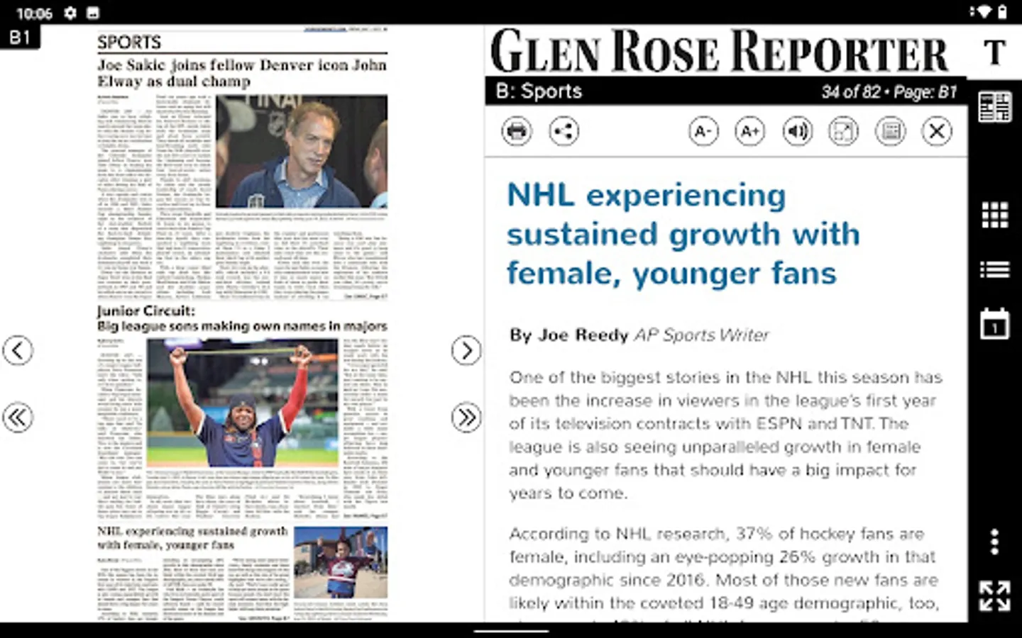 The interface is designed for tablets and phones offering multiple viewing options including typical mobile views ideal for phone users. Interactive features allow you to share articles to your favorite social network, email articles to a friend, clickable web links, read aloud, offline reading and more.