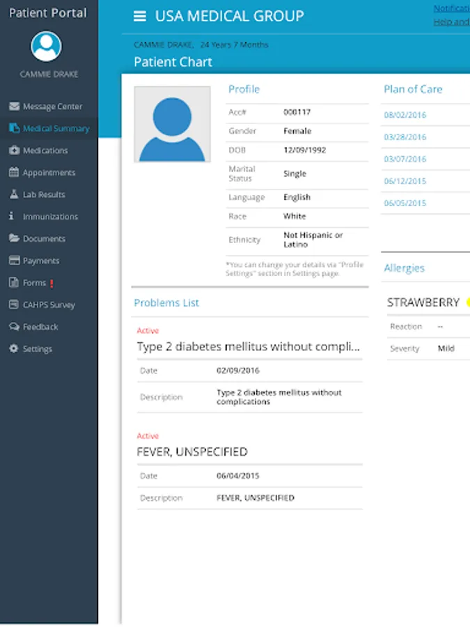 Patients can use this Patient Portal app to stay on track of their care plans. Patients can monitor and share health information, and request refills to their doctors office.