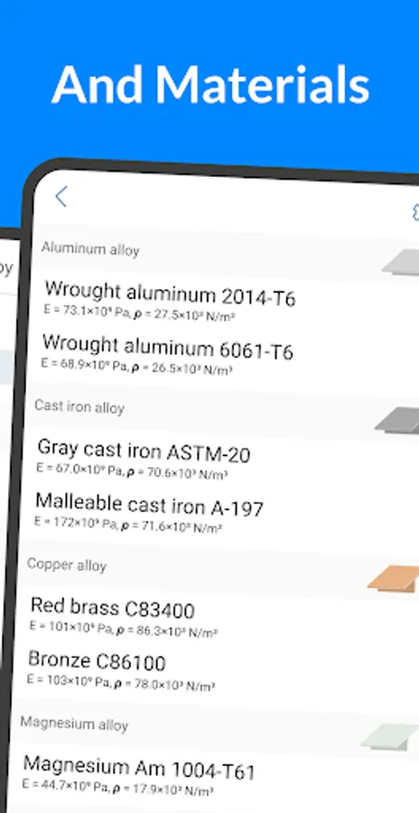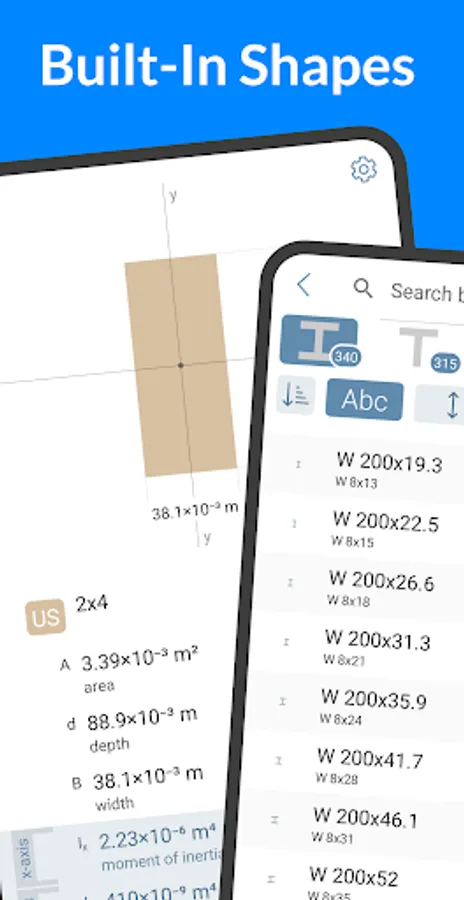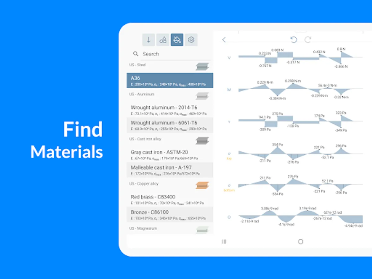Specify values directly, or find common shapes and materials using the built-in databases.