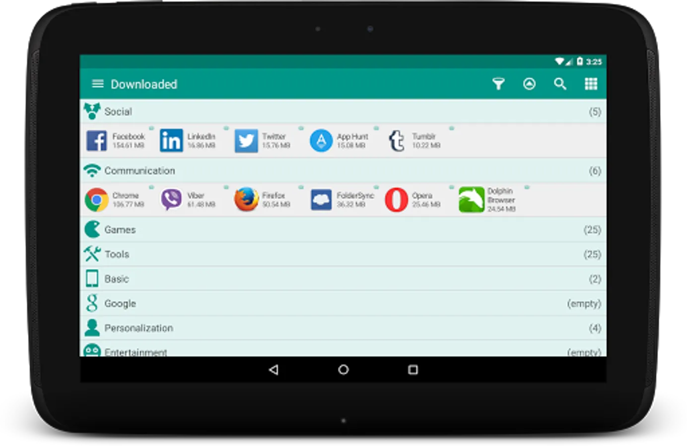 Glextor AppManager has very flexible user interface. You can change the layout, icons, sorting, themes, customize menus and much more according to your taste and needs.