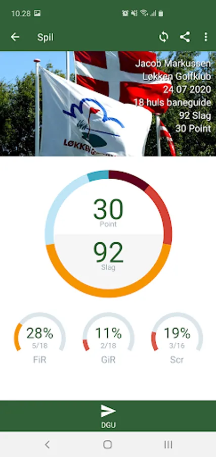 On top of that, GLFR makes it easy for you to keep track of your flight's scores. The simple interface makes registering shots easy, and when the round is over, you get a detailed view of every player's performance.