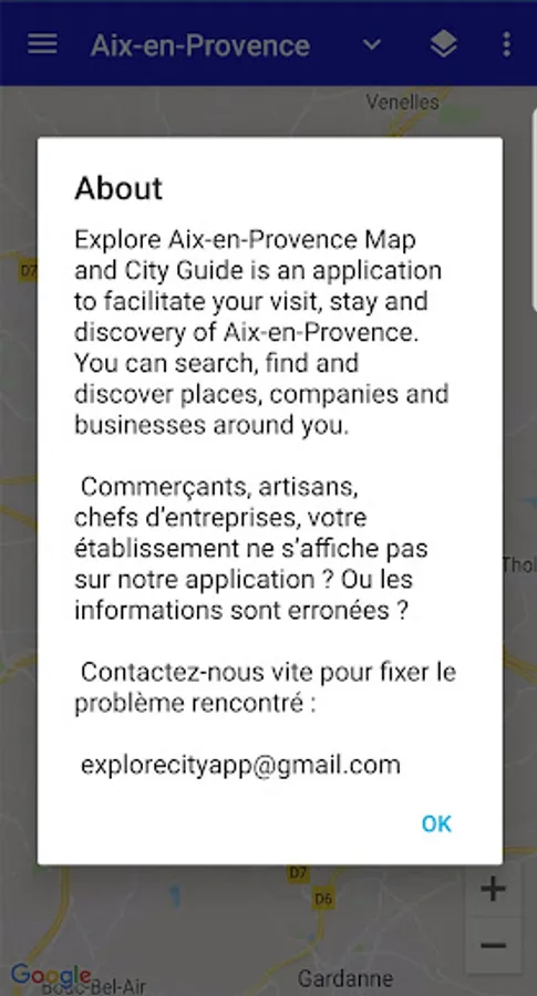 Explore Aix-en-Provence Map and City Guide is an application to facilitate your visit, stay and discovery of Aix-en-Provence. You can search, find and discover places, companies and businesses around you in Aix en Provence.