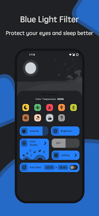 Eye Pro - Blue Light Filter is an optimal night filter created to provide warmlight night screen in order to ensure eye care against light blue wavelength from screen light and give you pleasant night reading while curing sleeplessness after twilight with night mode. Use night light anti glare to relieve eye strain and protect eyes from bluelight flux that can disrupt circadian rhythm, cause insomnia and restlessness, chronic migraine, sleepless chronic headache, glaucoma and cataract.