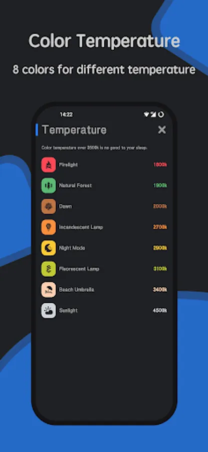⚡️ Notification widget - You can turn on/off blue light filter by the notification very conveniently, and choose the different blue light filter with a simple tap.