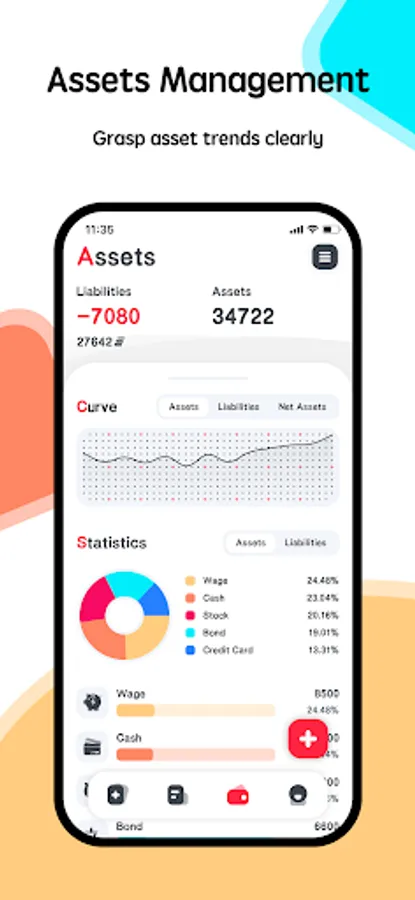 You can create your asset accounts, such as cash, bank card, funding, stock etc. and tracker the asset account's modify record, transfer record and order record.