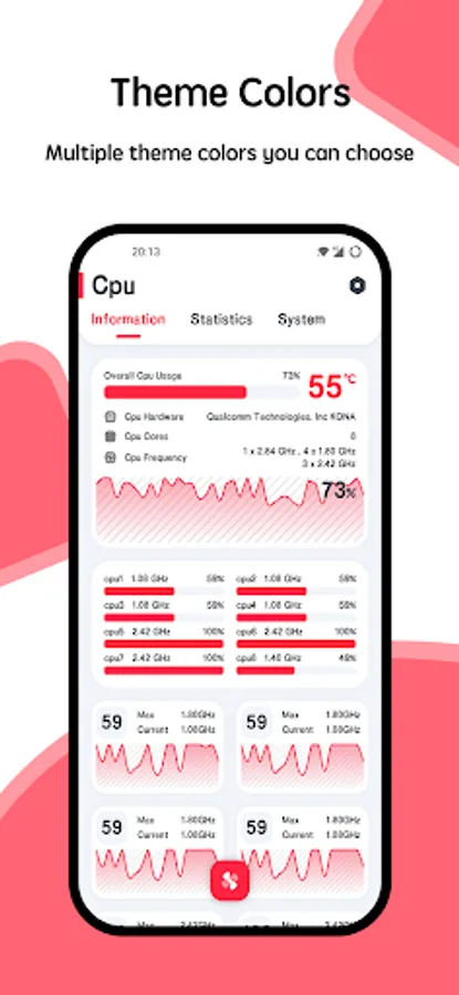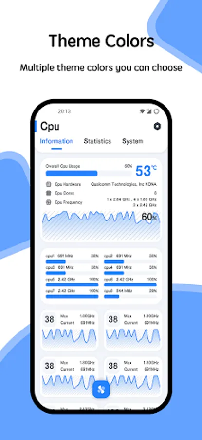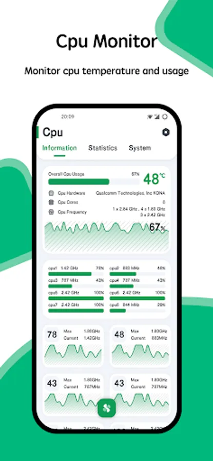 A beautiful and powerful cpu monitor app for android! You are able to monitor cpu temperature and frequency and analyze the cpu temperature and frequency history data. You can monitor the ram, cpu and battery information very convenient. The detail features including: