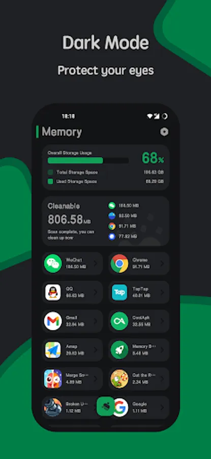 The app is a very powerful tool for monitoring your phone memory and storage information. You can check out the app's usage space and know where storage usage is, The detail features including: