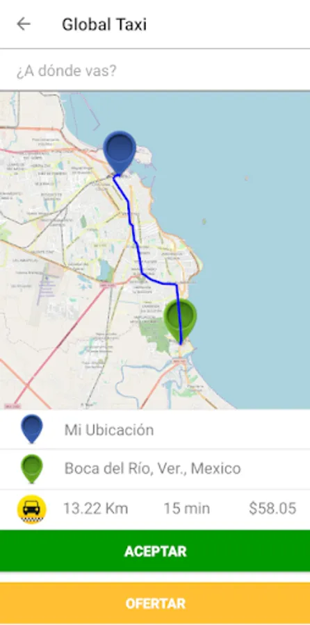 Application that allows users of public taxi service, request a service with a single click from the location where they are, quote a trip and offer a rate. Taxi operators will be able to download the application and be available to receive "ride" requests.