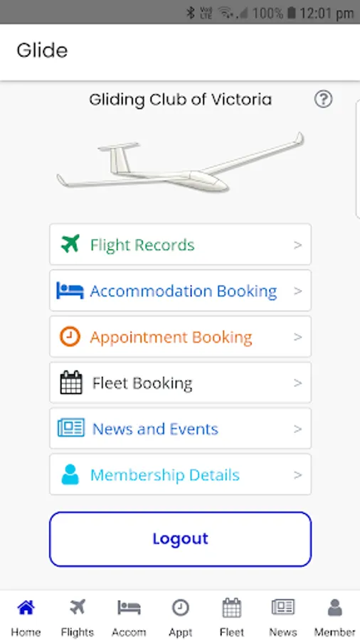 The Gliding Club of Victoria is a soaring club located in Benalla, Victoria, Australia. Through this app, the members can view their individual flights, book a room or camp site, book a glider, keep up to date with internal news items and make limited changes to their membership profile.