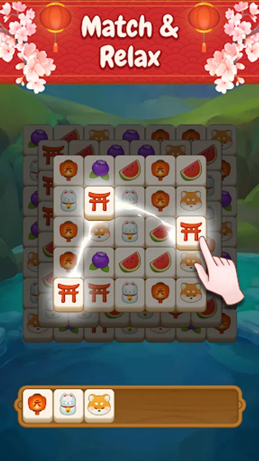 You need to match tiles with the same picture - Just tap on the same Mahjong tiles, and they will go down to the container – when you collect 3 identical tiles they will disappear and removed from the container.