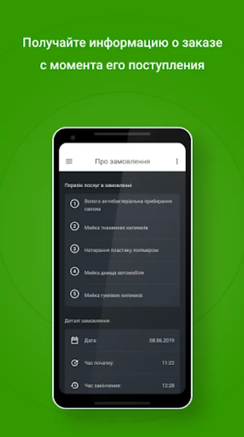 - see all the information entered in the car profile when ordering a service for this car. Prepare the necessary materials and equipment in order to start the execution of the order immediately upon arrival of the client (for the contractor / specialist / master)