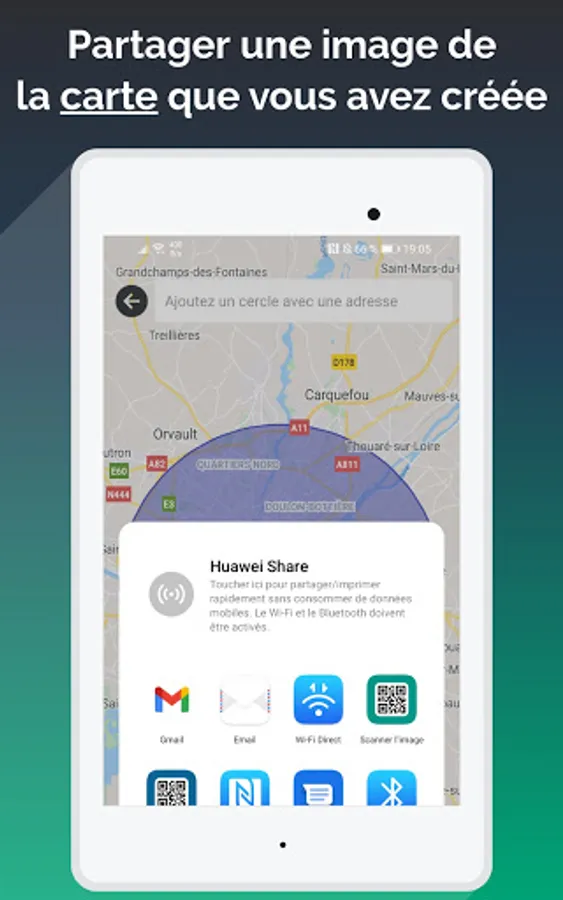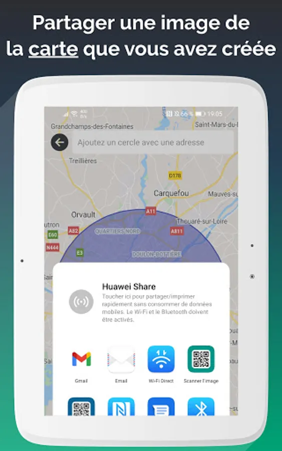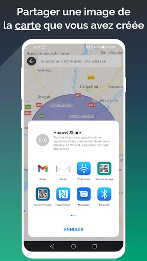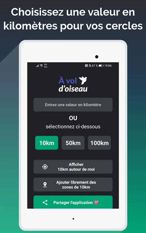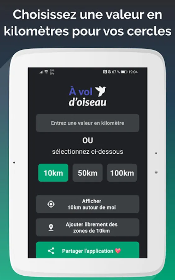 You will be able to quickly display a circle of distance around your GPS position if you wish, or simply add circles of different radius on the map to have the distances as the crow flies.