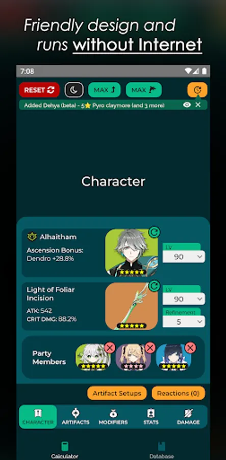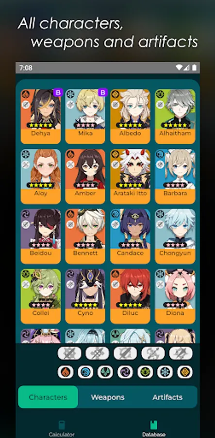 Disclaimer: This is a fan-made app with no affiliation with Genshin Impact, Hoyoverse, Cognosphere or any other third parties. All game data and images in this app is retrieved from third parties. Calculations are estimations that might not be 100% accurate, for information purposes only. The app by itself does not collect any data. However, third-party libraries may transmit or collect data for purposes such as the app's auto-update feature or Google analytics. No content in this app is meant to be a solicitation, offer or advice. You agree that when you use this app, we (Glimiku) have no liability for whatsoever loss, damage, or inconvenience caused by you using this app or inability to use this app.